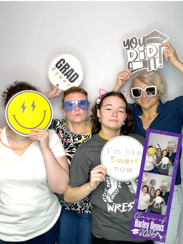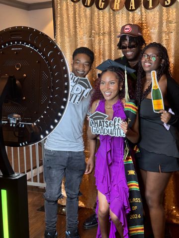 Our Digital photo booth includes photo, boomerang, gif and video capture options that are sent instantly via text, airdrop, QR code or email. This rental includes background of your choice and props.